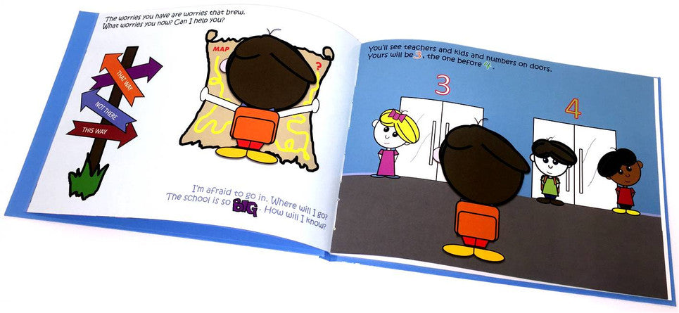 This colorfully illustrated children's book with predictable text covers many common anxieties - the bus, bullies, being alone without mommy or daddy on the first day.